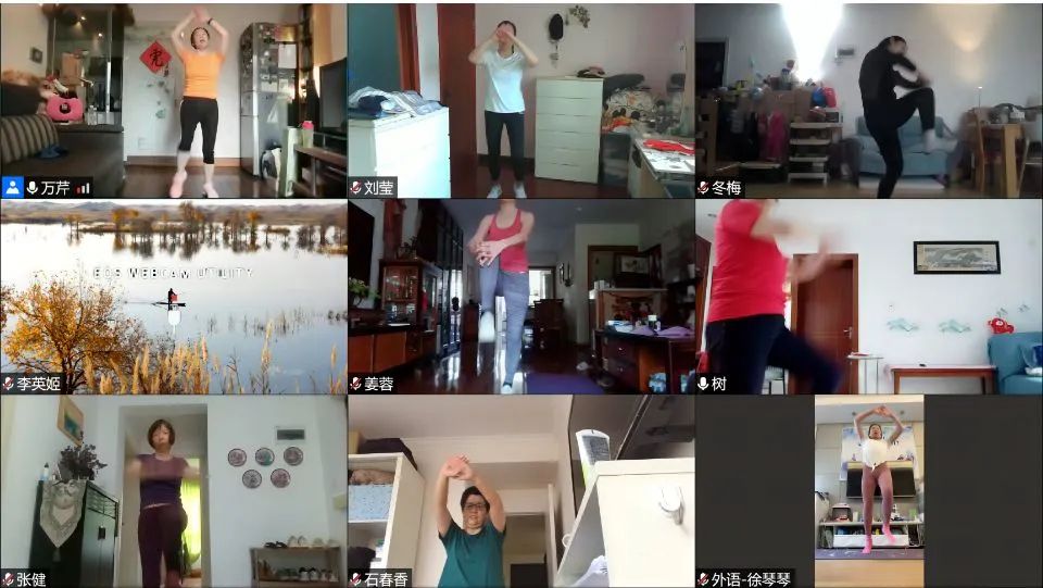 万芹老师疫情线上坚持带领全校教师“云锻炼”