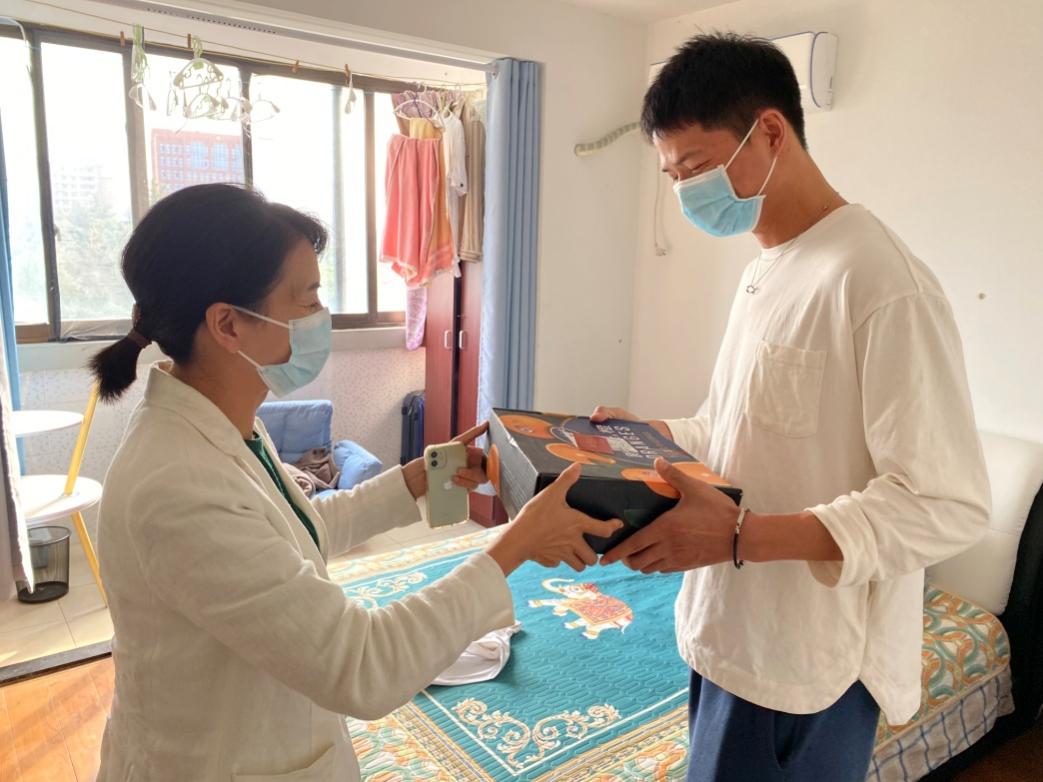 2021年11月3日,体育教育部直属党支部书记韩磊、分工会主席文镌,带着深情厚谊和美好祝愿,慰问曹伟老师,送上了组织的关怀与冬日的温暖。
