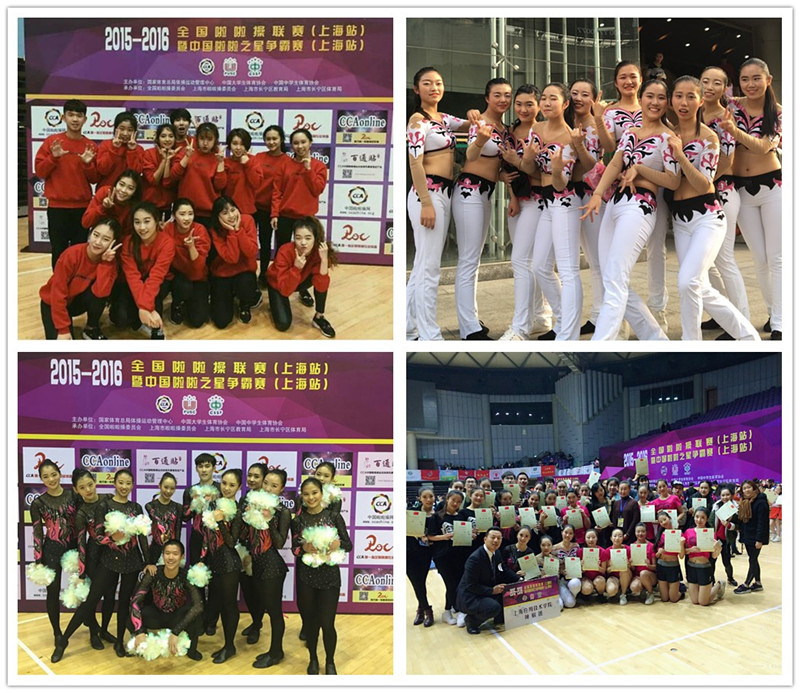 12“2015-2016全国啦啦操联赛(上海站)于长宁国际体操中心落下帷幕,来自全市各大高校和中小学的111支队伍,共计2540名队员参加比赛。我校健美操队参加了大学乙组集体花球自选动作、大学乙组集体花球规定动作和大学乙组集体街舞规定动作三组比赛,经过与七所高校的激烈角逐,我校健美操队在此三组组别中均获得第一名的佳绩。