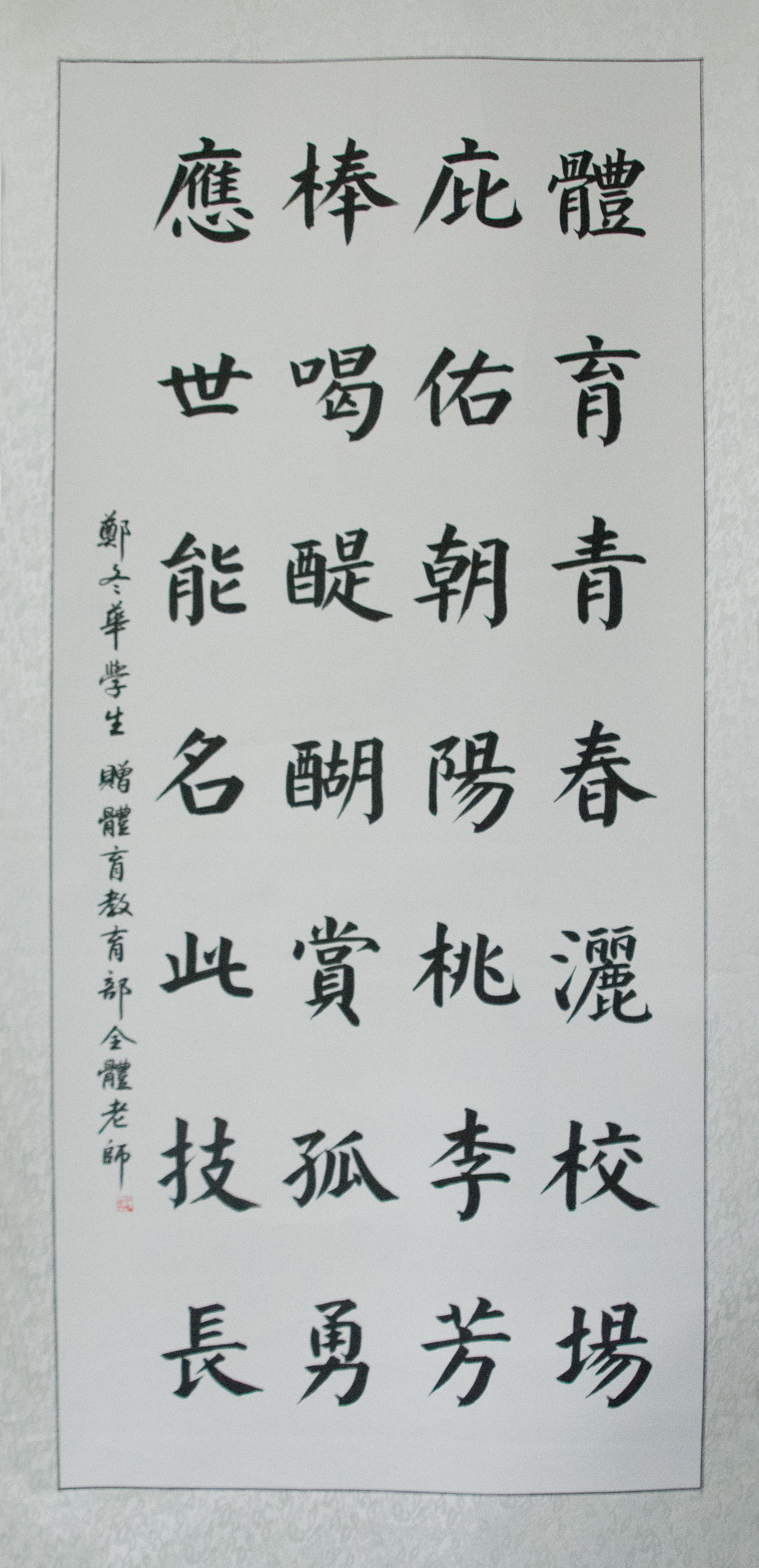 2006级化学工程学院校友奕伟——校武术运动队成员,敬赠母校体育教育部教练员。