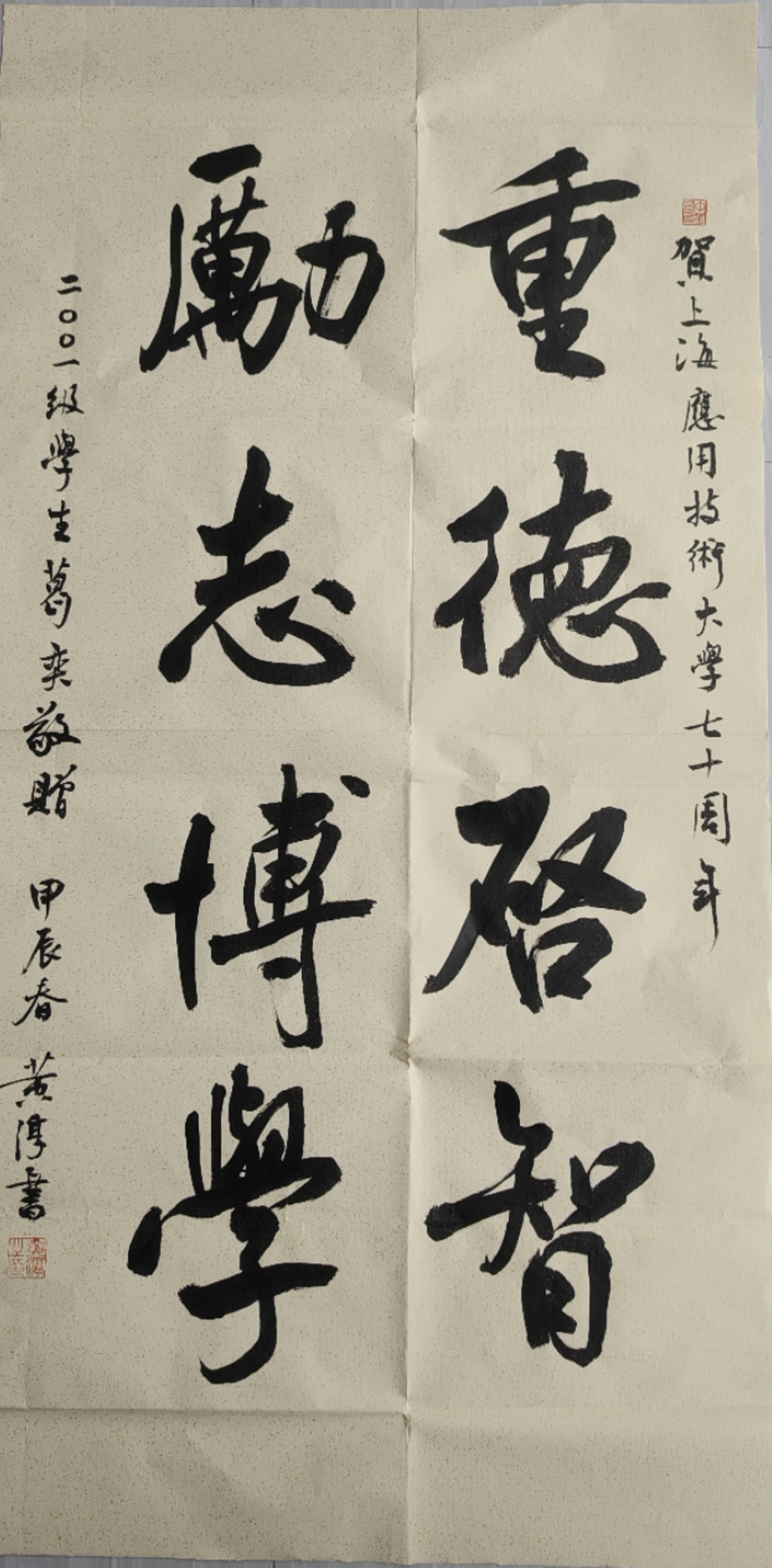 2013级材料学院校友李强、校舞狮队队员,敬赠母校体育教育部。