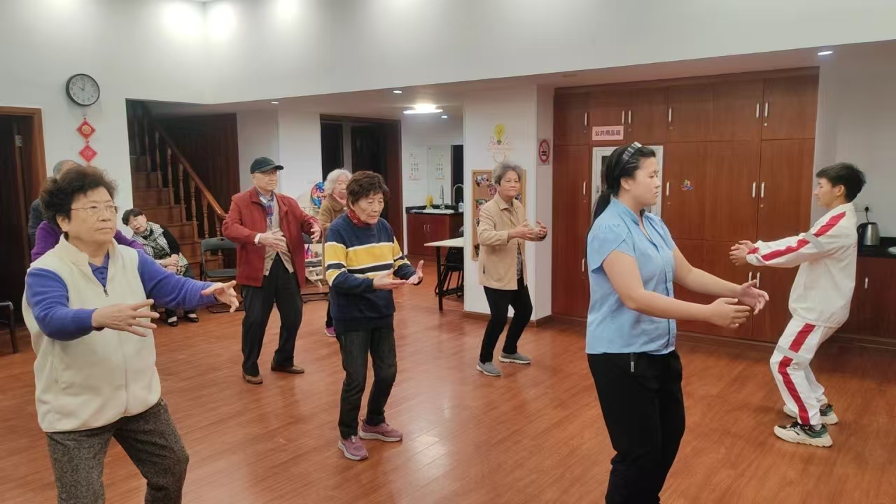 在体教部周美竹老师的精心策划与带领下,上海应用技术大学武术协会的成员林玉博、王志豪、蔡莹璇、杜怀旭,以及黄浦“缘梦之家”青年为老志愿服务社的青年志愿者们,组成了一支充满活力的教学队伍。他们积极行动,将“八段锦”这一蕴含深厚文化底蕴的健身功法,带到了居民的身边。
