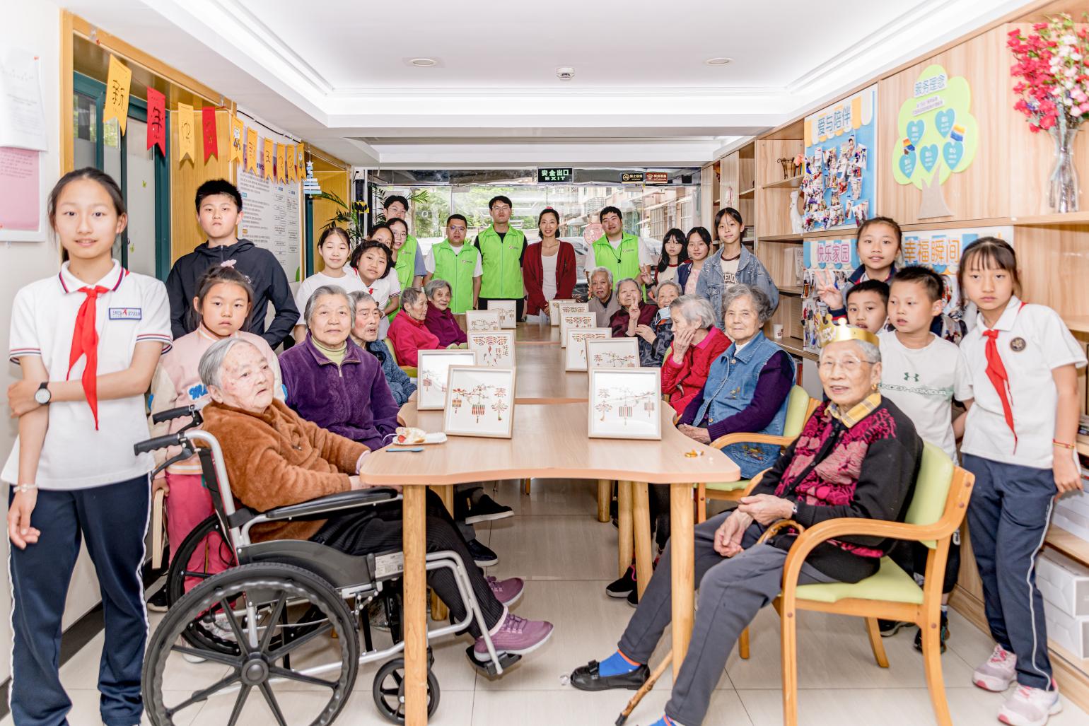 表演结束后,活动并未止步于掌声与欢笑。在周美竹老师的带领下,小小志愿者们与老人们携手完成了手工DIY非遗烧箔画的制作,这一过程不仅加深了两代人之间的情感交流,也让传统文化在孩子们的手中得以传承与创新。更为感人的是,当得知有老人恰逢当月生日,全体成员共同唱起了生日祝福歌,分享了甜蜜的蛋糕,镜头下定格的每一张合影,都是这份跨越年龄与身份的深厚情谊的最好见证。