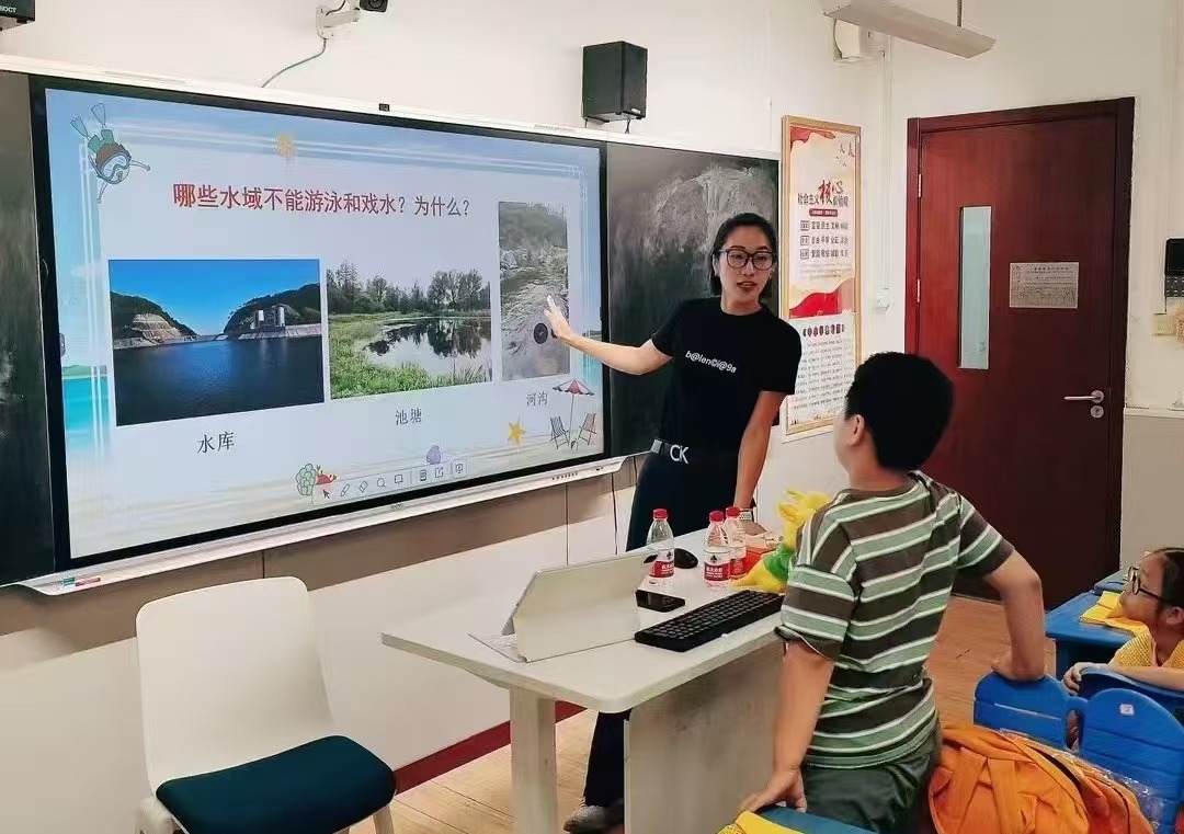 在这场爱的接力赛中,体教部周美竹老师以其一贯的社会责任感和对志愿服务的热忱,再次挺身而出。周老师积极响应号召,投身于黄浦区暑期爱心暑托班的防溺水公益讲座之中,用实际行动诠释了对志愿服务的高度重视和积极参与。