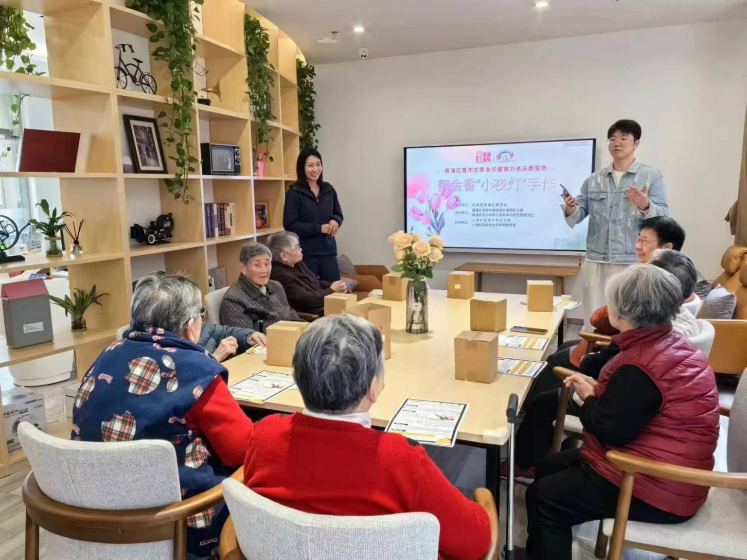活动尾声,上海应用技术大学的教师、学生志愿者与黄浦“缘梦之家”青年为老志愿服务社的工作人员携手,与老人们共同动手制作小夜灯,这份亲手制作的温暖,不仅点亮了房间的一角,更照亮了彼此的心房,让这份跨代的友谊与关爱在光影交错中得以升华。