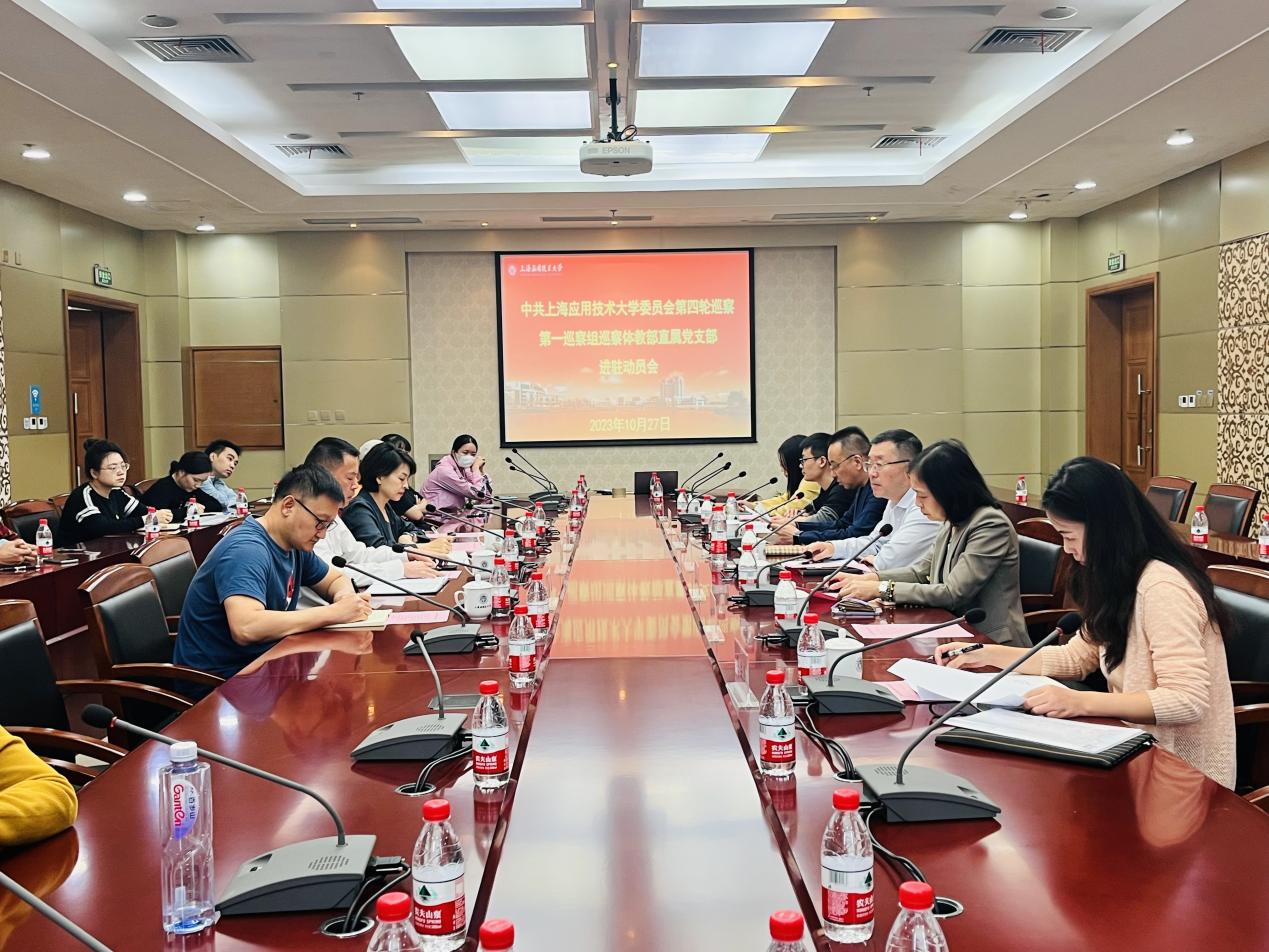 2023年10月27日(周五)上午10:30-11:15,校党委第四轮巡察第一巡察组巡察体教部直属党支部进驻动员会议在奉贤图书馆B103会议室举行。校党委副书记、纪委书记、监察专员李健出席会议并做重要讲话。巡察办主任杨燕华、第一巡察组组长袁翔、副组长朱敏、联络员、组员,以及体教部党政班子全体成员、教职工和离退休代表参加会议,会议由体教部主任尹小俭主持。