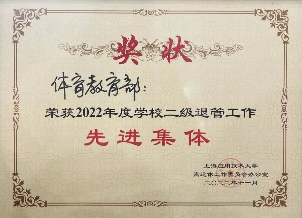 体育教育部荣获2022年度学校二级退管工作先进集体