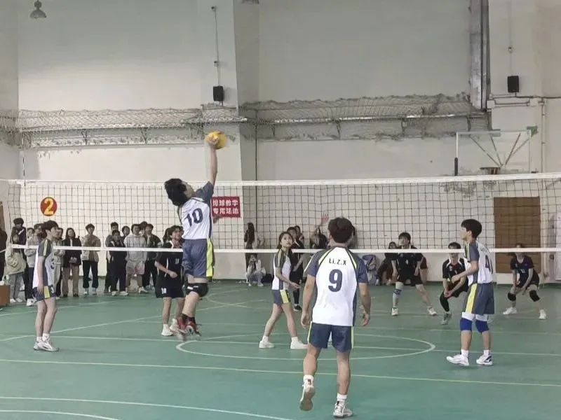城建学院主力军起身跳跃,精准击球,拿下分数;城建MVP选手在激烈的战局中尽力救下每一颗球,展现了坚持不懈的排球精神。不知不觉,比赛进程已过半,中场休息时,啦啦操协会带来精彩表演,活力四射,激情飞扬。一声哨响,选手们进入比赛状态,再次将观众带入激动的情绪中。排球场地面的摩擦声与观众的呐喊充满着活力的气息,两队分数持续上升,选手们全力以赴,比赛更为激烈,现场欢呼声不断。