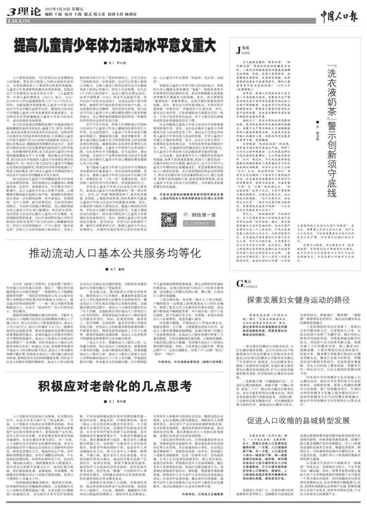 5月20日,《中国人口报》理论版刊发了我校体育教育部教授尹小俭署名文章《提高儿童青少年体力活动水平意义重大》。