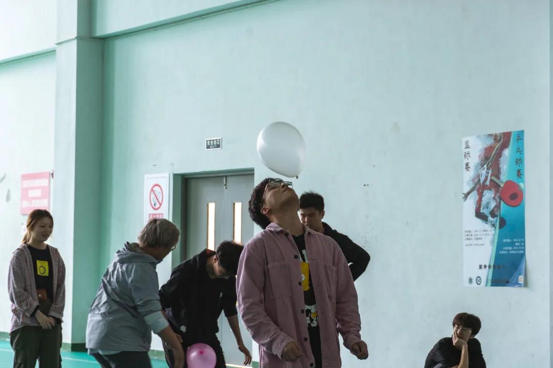 在这其中最激烈的可以说是“夹气球”游戏了。每队队员到场馆空旷地,将手背在身后。在主持人宣布游戏开始后,第一个人用头和身体夹住气球传给下一个人,逐个传递,最先传完的一组获胜。
