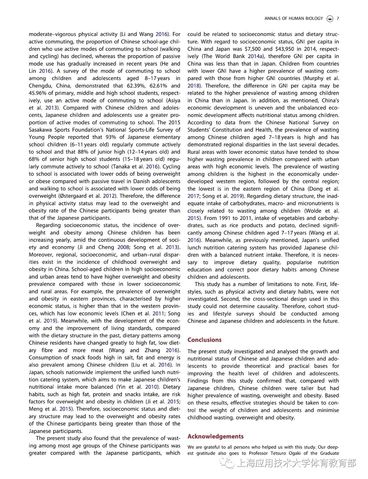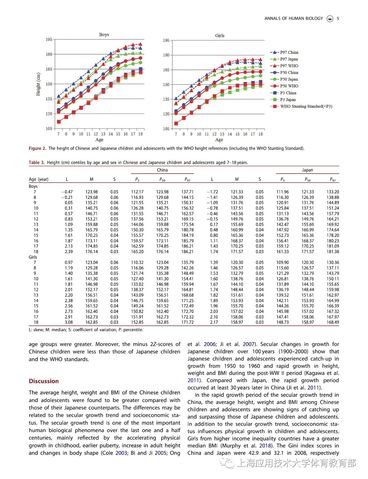 儿童青少年生长发育和营养状况是全球最为重要的公共健康话题之一,监测儿童青少年生长发育、营养状况对于公共卫生政策的制定至关重要。2014年全国两会期间,一位人大代表引用数据表示7-17岁的中国男孩比日本同龄男孩矮2.54cm,“2.54cm”这一数字像一块石头被砸进湖面,激起社会对我国青少年体质的集中关注。作为我国近邻,日本是世界上儿童青少年体质监测工作开展较好、数据资料较全的国家之一,并且中日两国具有相同的文化渊源和共同的东亚裔种族遗传背景,地理气候、生活习惯、人种特征等方面也有诸多相似之处,因此,横向地将中日儿童青少年进行比较,对于促进我国儿童青少年健康成长具有较强的借鉴意义和参考价值。