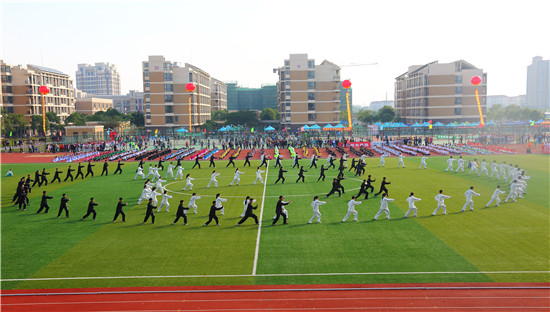 开幕式上还进行了第九套广播体操、“中华武韵”太极拳武术、“欢聚一堂”滚灯艺术和“筑梦青春”大型团体花球啦啦操等精彩表演,同学们整齐划一、自信舒展的动作展现了上应学子的青春与活力。