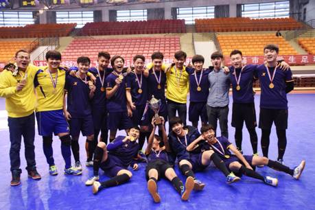 “特步中国大学生五人制足球联赛(CCFL)”由中国大学生体育协会、中国足球协会共同主办,受到了广大学生的热烈推崇,比赛的冠军将代表上海赛区角逐2015-2016赛季全国总决赛。我校连续三届夺得校园组冠军,本届决赛我校以2:0的成绩战胜了上海工程技术大学,成功卫冕。其中教练季斌老师、队长陈飞和守门员车承烨分别荣获“最佳教练”、“最佳球员“和“最佳守门员”称号。